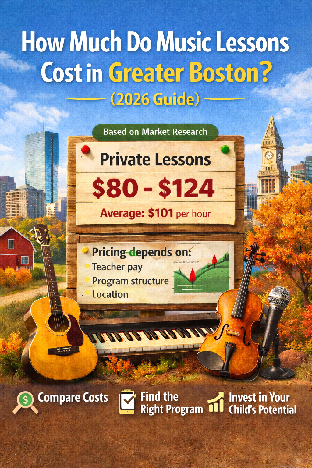 Based on research across multiple Boston-area towns, 60-minute private music lessons typically range from:
